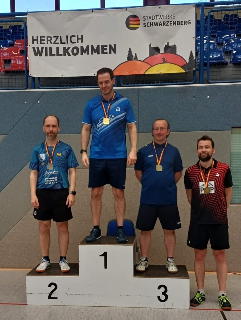 Als erster Lommatzscher Tischtennisspieler gewann Martin Rakette eine Medaille bei den Mitteldeutschen Meisterschaften der Senioren! Im Feld der 16 Qualifizierten aus den Landesverbänden Sachsen, Sachsen-Anhalt und Thüringen rückte die Lommatzscher Nr. 1 in der Altersklasse 40 nach drei starken Siegen bis ins Halbfinale vor. Am Ende von Turniertag 2 konnte sich Martin Rakette in der Ritter-Georg-Halle von Schwarzenberg/Erzgebirge über die Bronze-Medaille freuen!